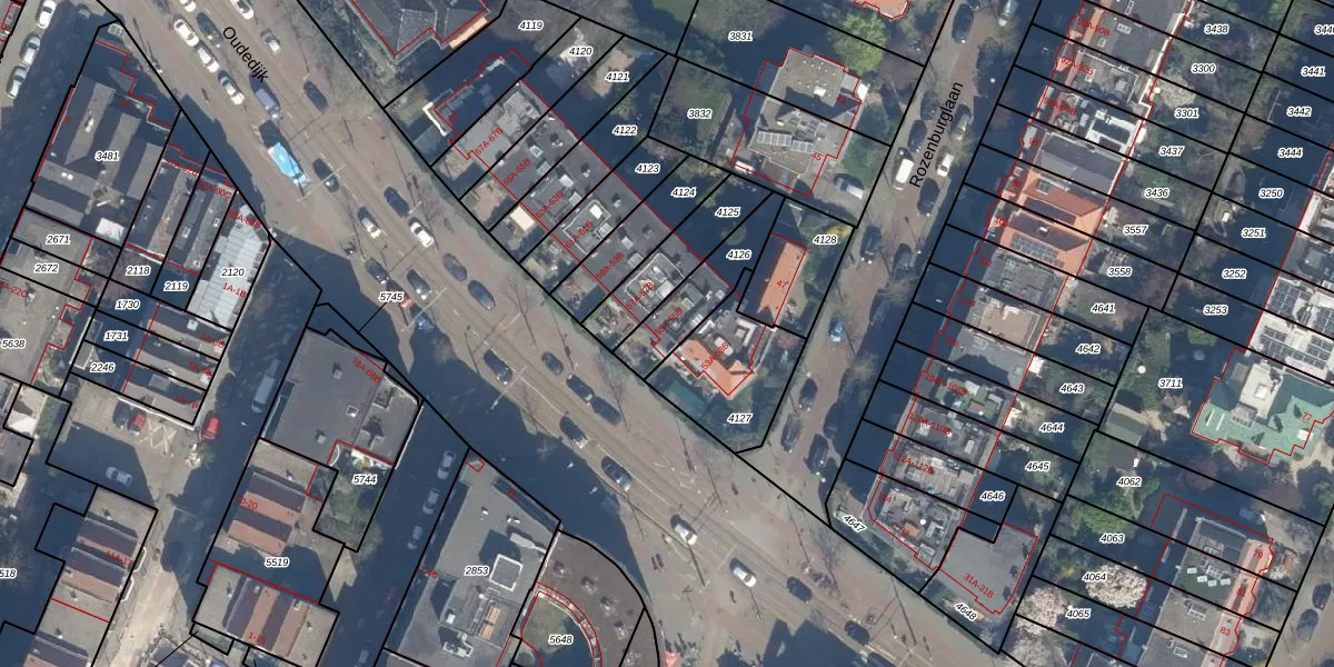 Oudedijk 55-B is gelegen op kadastraal perceel KLG00G4126. Deze kadastrale aanduiding is uniek en wordt gebruikt door het Kadaster om eigendomsrechten en andere zakelijke rechten vast te leggen. Het perceel maakt onderdeel uit van de kadastrale gemeente Kralingen.