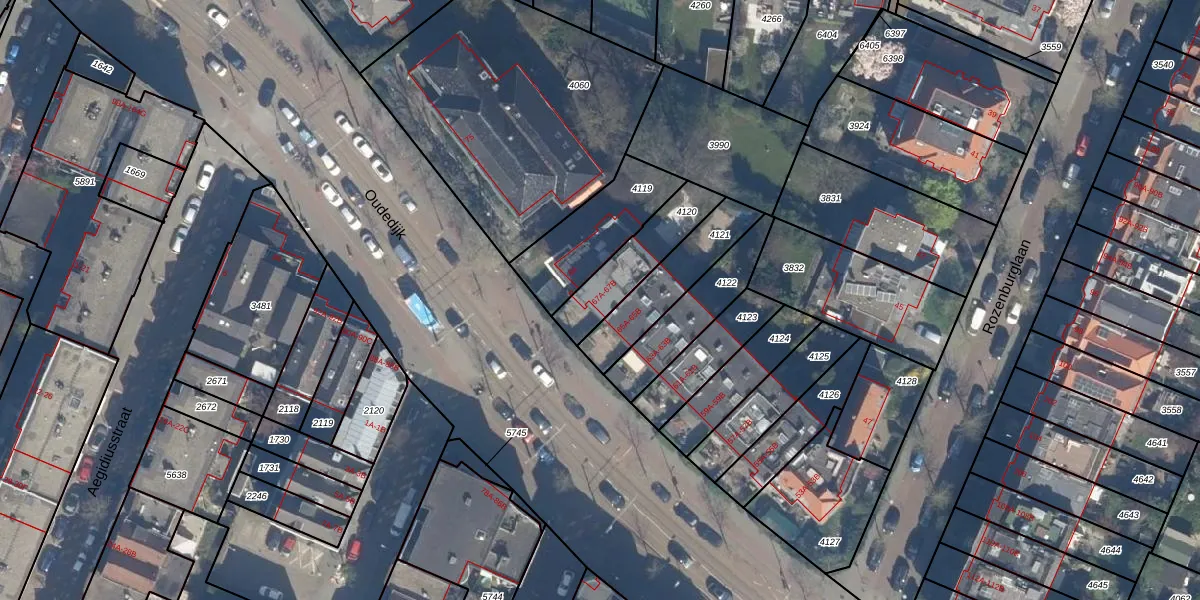 Oudedijk 67-B is gelegen op kadastraal perceel KLG00G4120. Deze kadastrale aanduiding is uniek en wordt gebruikt door het Kadaster om eigendomsrechten en andere zakelijke rechten vast te leggen. Het perceel maakt onderdeel uit van de kadastrale gemeente Kralingen.