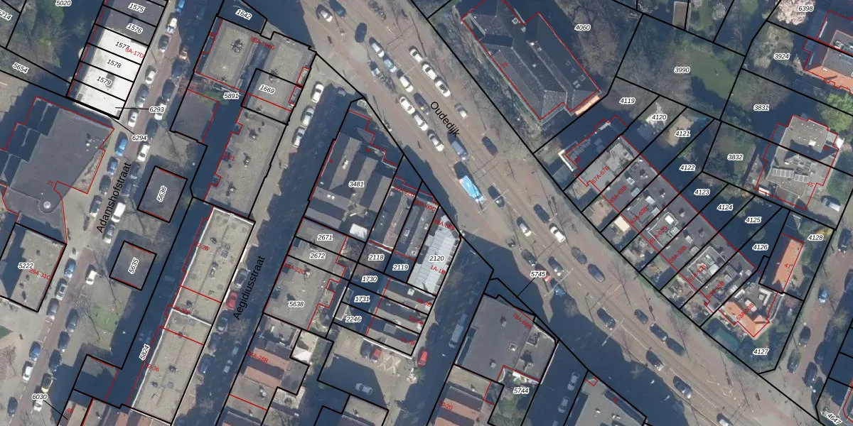 Oudedijk 90-A is gelegen op kadastraal perceel KLG00G2119. Deze kadastrale aanduiding is uniek en wordt gebruikt door het Kadaster om eigendomsrechten en andere zakelijke rechten vast te leggen. Het perceel maakt onderdeel uit van de kadastrale gemeente Kralingen.
