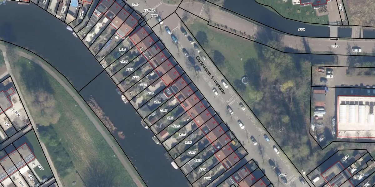 Oudedijkse Schiekade 24 is gelegen op kadastraal perceel OVS00B5328. Deze kadastrale aanduiding is uniek en wordt gebruikt door het Kadaster om eigendomsrechten en andere zakelijke rechten vast te leggen. Het perceel maakt onderdeel uit van de kadastrale gemeente Overschie.