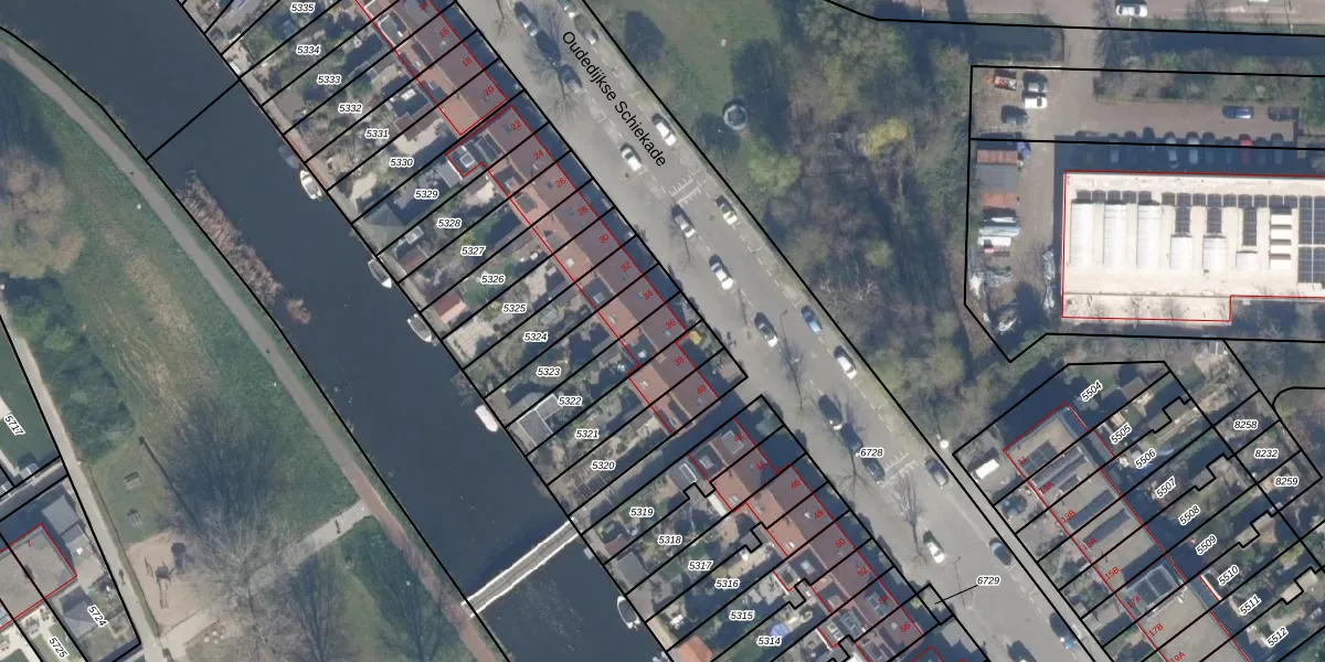 Het perceel waarop Oudedijkse Schiekade 36 staat heeft een oppervlakte van 183 m². Dit is een middelgroot perceel. De perceeloppervlakte wordt geregistreerd door het Kadaster. Gedetailleerde informatie over de maten van dit perceel kunt u vinden in het rapport Kadastrale kaart met maatvoering van Oudedijkse Schiekade 36.