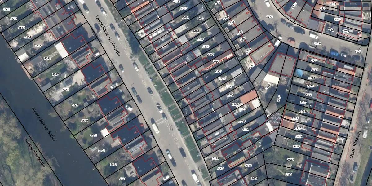 Oudedijkse Schiekade 71 is gelegen op kadastraal perceel OVS00B2703. Deze kadastrale aanduiding is uniek en wordt gebruikt door het Kadaster om eigendomsrechten en andere zakelijke rechten vast te leggen. Het perceel maakt onderdeel uit van de kadastrale gemeente Overschie.