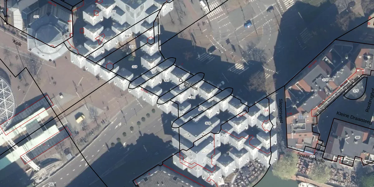 Het perceel waarop Overblaak 70 staat heeft een oppervlakte van 245 m². Dit is een middelgroot perceel. De perceeloppervlakte wordt geregistreerd door het Kadaster. Gedetailleerde informatie over de maten van dit perceel kunt u vinden in het rapport Kadastrale kaart met maatvoering van Overblaak 70.