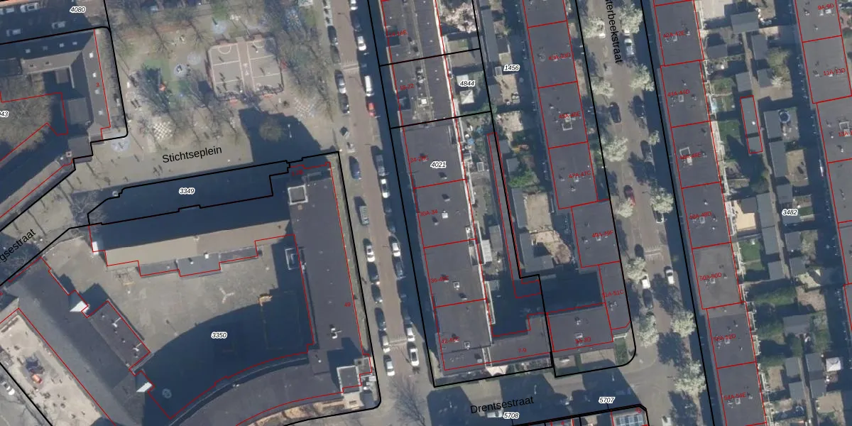 Het adres ligt op het perceel RTD05-V-4021, dat zich in de kadastrale gemeente Rotterdam bevindt. De oppervlakte van het perceel is 1572 m². Dat is groter dan gemiddeld in Rotterdam, waar de gemiddelde perceeloppervlakte op 1401,79 m² ligt. Het grootste perceel in de kadastrale gemeente is 36,8 ha. Het kleinste perceel heeft een oppervlakte van 0 m². Op het perceel liggen in totaal 30 adressen. De laatste wijziging in het de Basisregistratie Kadaster (BRK) was op 19-04-2004.