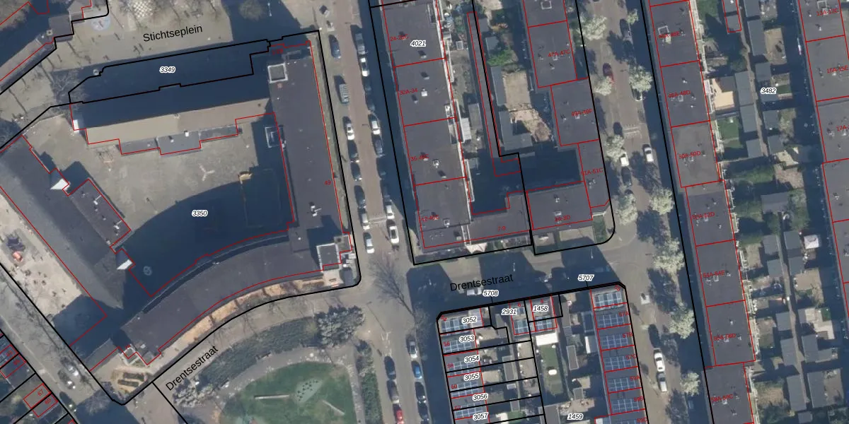 Het adres ligt op het perceel RTD05-V-4021, dat zich in de kadastrale gemeente Rotterdam bevindt. De oppervlakte van het perceel is 1572 m². Dat is groter dan gemiddeld in Rotterdam, waar de gemiddelde perceeloppervlakte op 1401,79 m² ligt. Het grootste perceel in de kadastrale gemeente is 36,8 ha. Het kleinste perceel heeft een oppervlakte van 0 m². Op het perceel zijn 30 adressen aanwezig. De huidige grenzen van het perceel zijn digitaal in de Basisregistratie Kadaster (BRK) geregistreerd op 19-04-2004.
