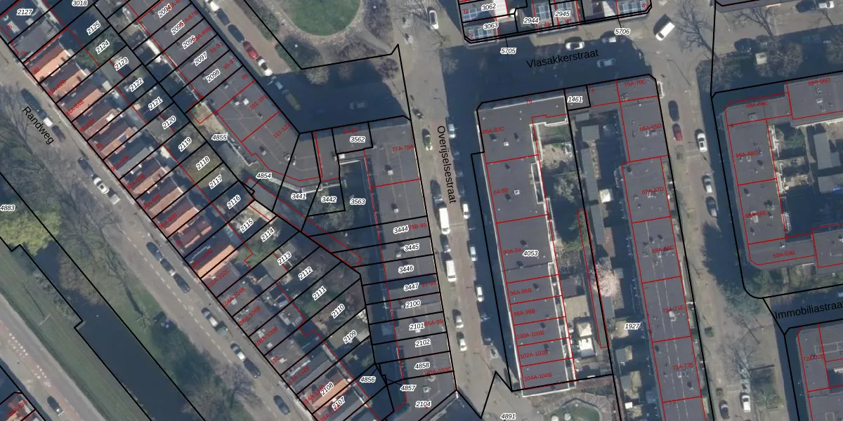 Het perceel waarop Overijselsestraat 81-A staat heeft een oppervlakte van 451 m². Dit is een groot perceel. De perceeloppervlakte wordt geregistreerd door het Kadaster. Gedetailleerde informatie over de maten van dit perceel kunt u vinden in het rapport Kadastrale kaart met maatvoering van Overijselsestraat 81-A.