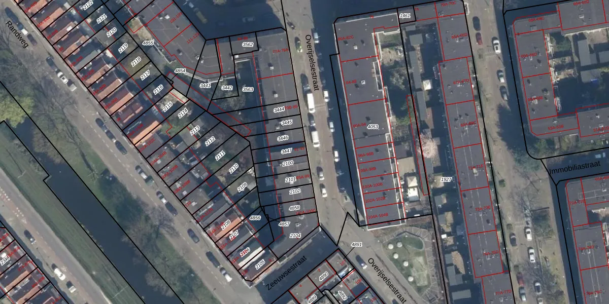 Het perceel waarop Overijselsestraat 93 staat heeft een oppervlakte van 82 m². Dit is een klein perceel. De perceeloppervlakte wordt geregistreerd door het Kadaster. Gedetailleerde informatie over de maten van dit perceel kunt u vinden in het rapport Kadastrale kaart met maatvoering van Overijselsestraat 93.