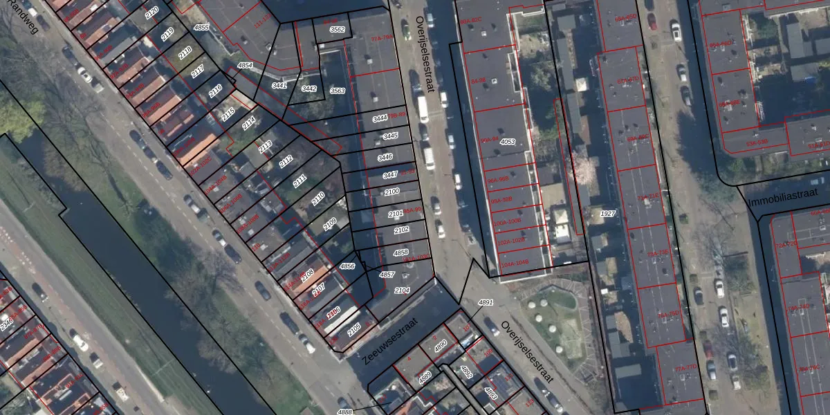 Overijselsestraat 97-B is gelegen op kadastraal perceel RTD05V2101. Deze kadastrale aanduiding is uniek en wordt gebruikt door het Kadaster om eigendomsrechten en andere zakelijke rechten vast te leggen. Het perceel maakt onderdeel uit van de kadastrale gemeente Rotterdam.