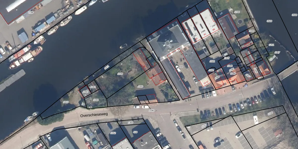 Overschieseweg 16 is gelegen op kadastraal perceel RTD10AC1043. Deze kadastrale aanduiding is uniek en wordt gebruikt door het Kadaster om eigendomsrechten en andere zakelijke rechten vast te leggen. Het perceel maakt onderdeel uit van de kadastrale gemeente Rotterdam.