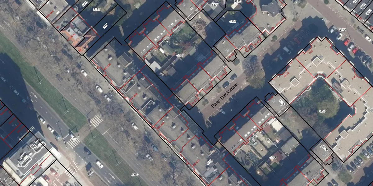 Paap Dirckstraat 71 is gelegen op kadastraal perceel RTD08X5278. Deze kadastrale aanduiding is uniek en wordt gebruikt door het Kadaster om eigendomsrechten en andere zakelijke rechten vast te leggen. Het perceel maakt onderdeel uit van de kadastrale gemeente Rotterdam.