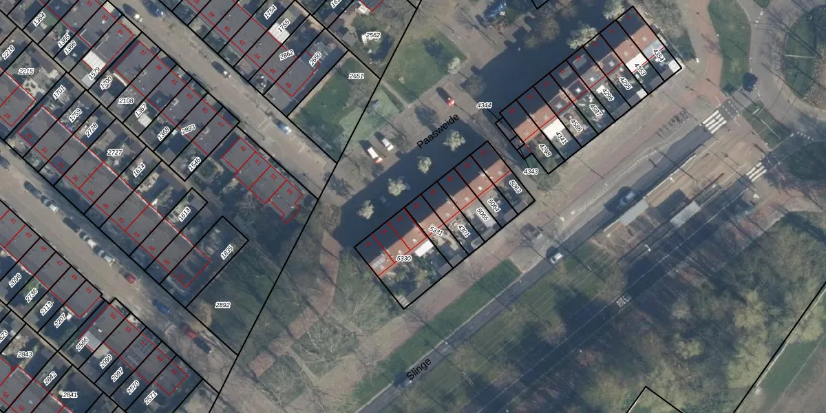 Het perceel waarop Paasweide 30 staat heeft een oppervlakte van 96 m². Dit is een klein perceel. De perceeloppervlakte wordt geregistreerd door het Kadaster. Gedetailleerde informatie over de maten van dit perceel kunt u vinden in het rapport Kadastrale kaart met maatvoering van Paasweide 30.