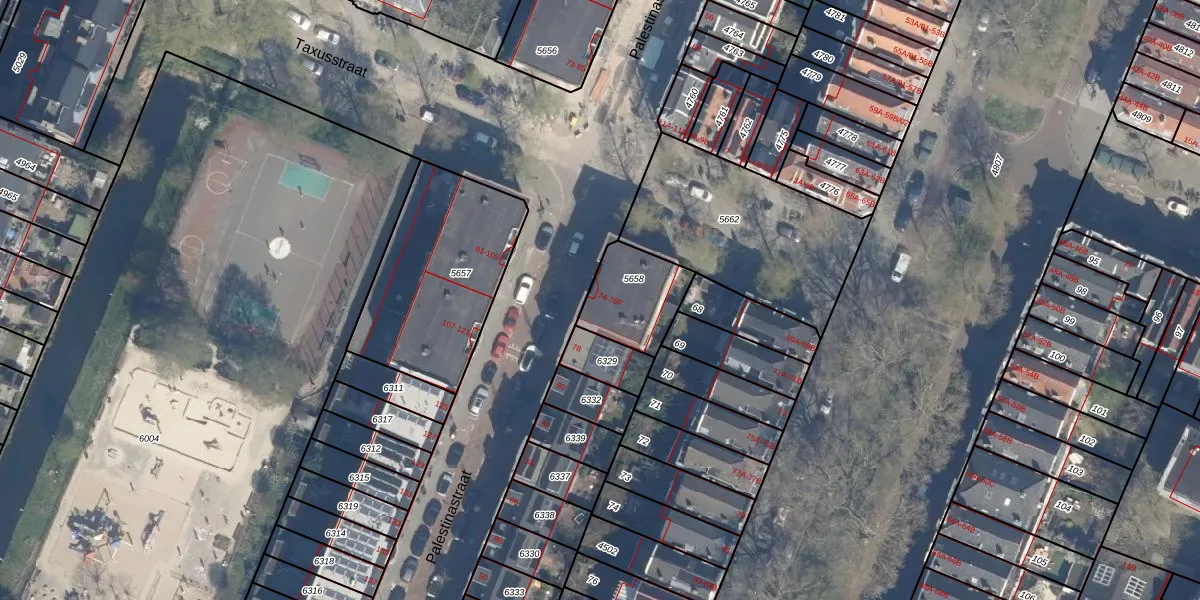 Het perceel waarop Palestinastraat 74 staat heeft een oppervlakte van 242 m². Dit is een middelgroot perceel. De perceeloppervlakte wordt geregistreerd door het Kadaster. Gedetailleerde informatie over de maten van dit perceel kunt u vinden in het rapport Kadastrale kaart met maatvoering van Palestinastraat 74.