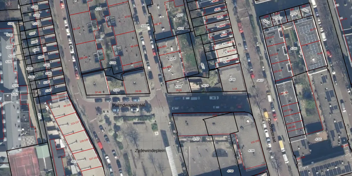 Het perceel waarop Palmdwarsstraat 21 staat heeft een oppervlakte van 111 m². Dit is een middelgroot perceel. De perceeloppervlakte wordt geregistreerd door het Kadaster. Gedetailleerde informatie over de maten van dit perceel kunt u vinden in het rapport Kadastrale kaart met maatvoering van Palmdwarsstraat 21.