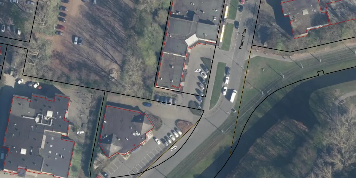 Het perceel waarop Palmentuin 69 staat heeft een oppervlakte van 1725 m². Dit is een zeer groot perceel. De perceeloppervlakte wordt geregistreerd door het Kadaster. Gedetailleerde informatie over de maten van dit perceel kunt u vinden in het rapport Kadastrale kaart met maatvoering van Palmentuin 69.