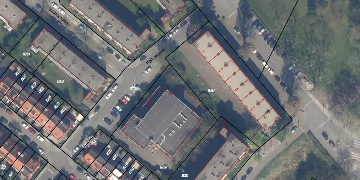 Het perceel waarop Paltroklaan 34 staat heeft een oppervlakte van 1975 m². Dit is een zeer groot perceel. De perceeloppervlakte wordt geregistreerd door het Kadaster. Gedetailleerde informatie over de maten van dit perceel kunt u vinden in het rapport Kadastrale kaart met maatvoering van Paltroklaan 34.