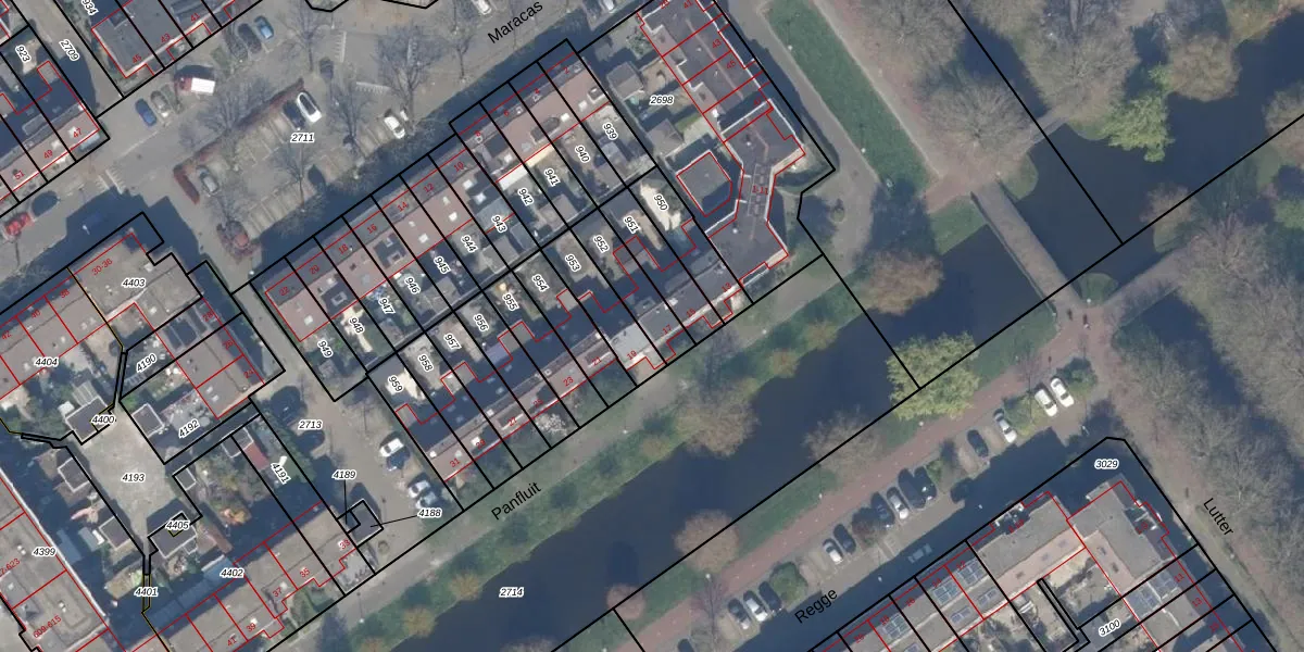 Gebruik de zoekbalk of klik op een perceel voor informatie over de adressen binnen dit perceel.