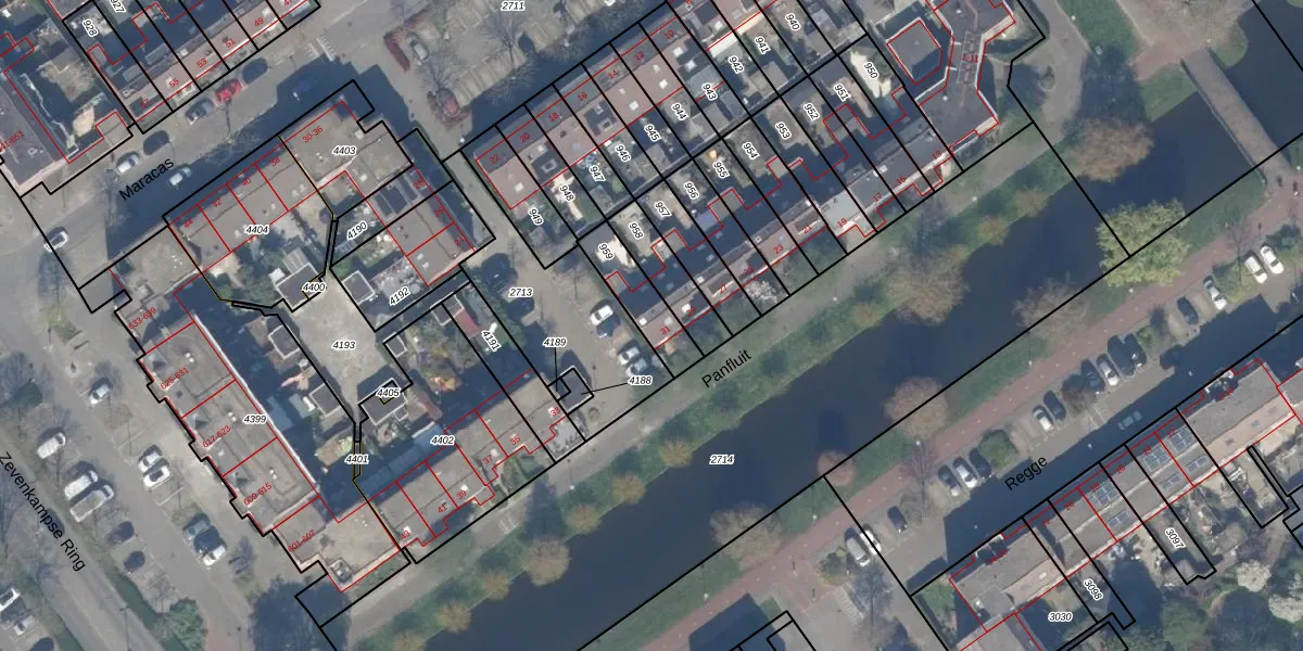 Gebruik de zoekbalk of klik op een perceel voor informatie over de adressen binnen dit perceel.