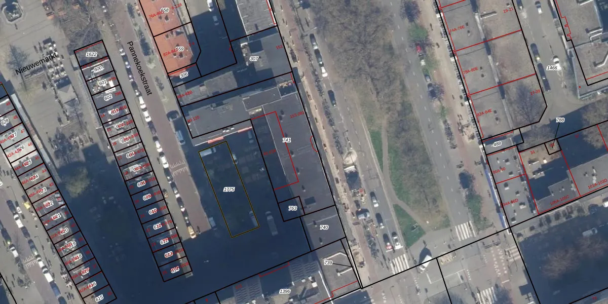 Het perceel waarop het adres ligt is RTD04-AF-741. De afkorting 'RTD04' staat voor kadastrale gemeente Rotterdam. Het perceel is 1008 m² groot. Dat is kleiner dan de gemiddelde perceeloppervlakte in Rotterdam, dat op 1239,97 m² ligt. Het grootste perceel in de kadastrale gemeente is 17,3 ha. Het kleinste perceel heeft een oppervlakte van 0 m². Er zijn 64 adressen aanwezig op het perceel. De laatste wijziging in het de Basisregistratie Kadaster (BRK) was op 09-01-2003.