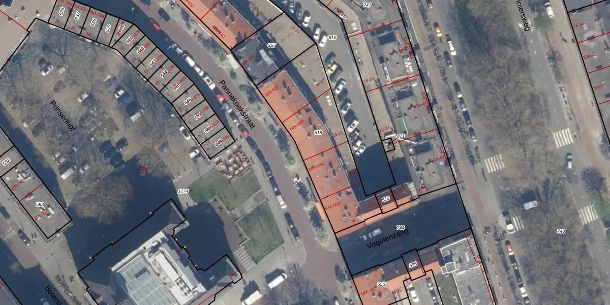 Het perceel waarop Pannekoekstraat 56-C staat heeft een oppervlakte van 1014 m². Dit is een zeer groot perceel. De perceeloppervlakte wordt geregistreerd door het Kadaster. Gedetailleerde informatie over de maten van dit perceel kunt u vinden in het rapport Kadastrale kaart met maatvoering van Pannekoekstraat 56-C.