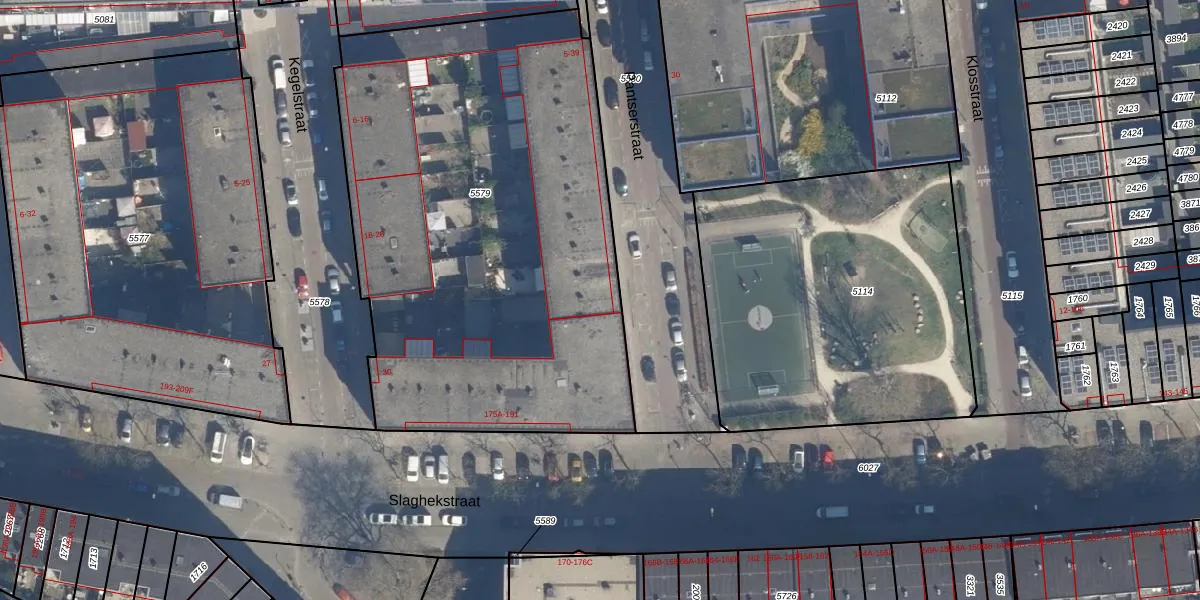 Het perceel waarop Pantserstraat 39 staat heeft een oppervlakte van 2930 m². Dit is een zeer groot perceel. De perceeloppervlakte wordt geregistreerd door het Kadaster. Gedetailleerde informatie over de maten van dit perceel kunt u vinden in het rapport Kadastrale kaart met maatvoering van Pantserstraat 39.