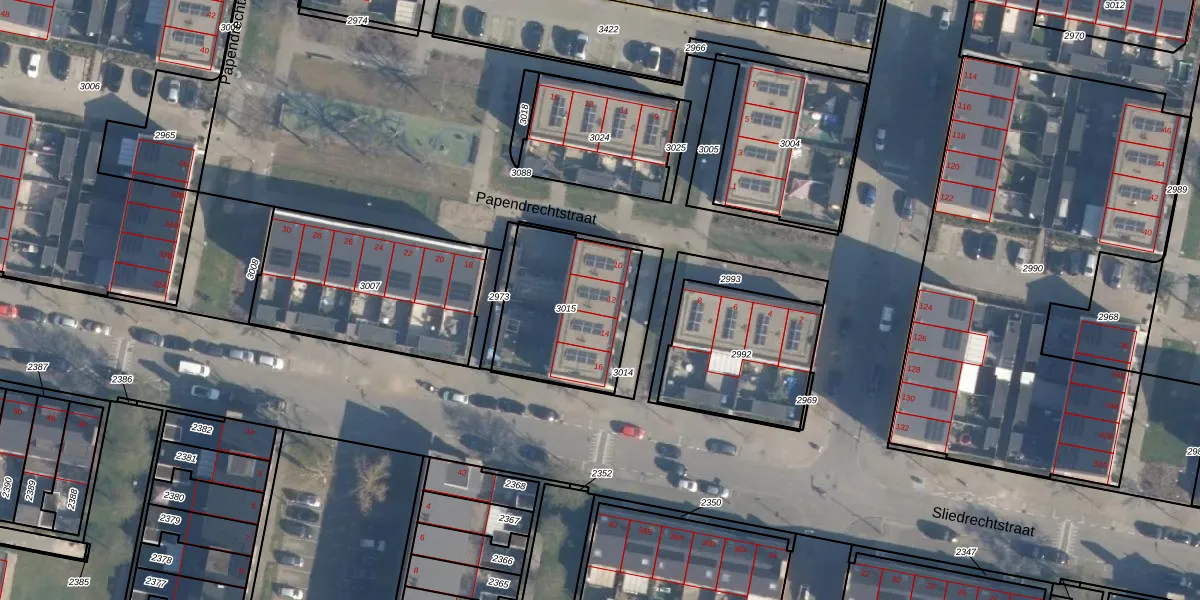 Papendrechtstraat 12 is gelegen op kadastraal perceel CLS00L3015. Deze kadastrale aanduiding is uniek en wordt gebruikt door het Kadaster om eigendomsrechten en andere zakelijke rechten vast te leggen. Het perceel maakt onderdeel uit van de kadastrale gemeente Charlois.