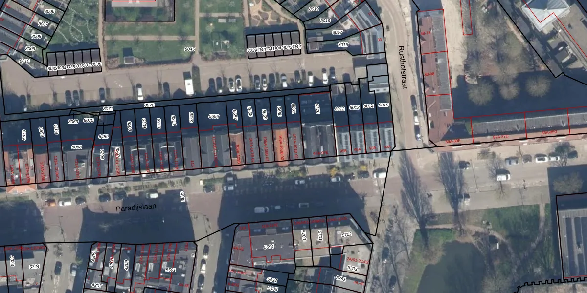 Paradijslaan 101-B-02 is gelegen op kadastraal perceel RTD07R5661. Deze kadastrale aanduiding is uniek en wordt gebruikt door het Kadaster om eigendomsrechten en andere zakelijke rechten vast te leggen. Het perceel maakt onderdeel uit van de kadastrale gemeente Rotterdam.