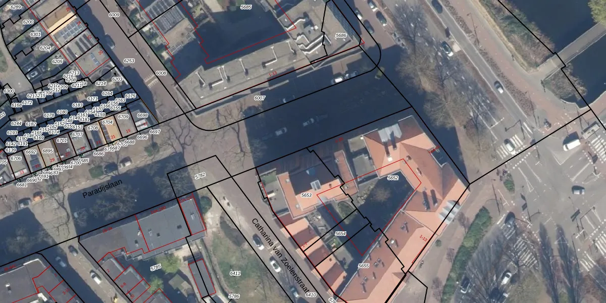 Paradijslaan 12-D is gelegen op kadastraal perceel KLG00C5653. Deze kadastrale aanduiding is uniek en wordt gebruikt door het Kadaster om eigendomsrechten en andere zakelijke rechten vast te leggen. Het perceel maakt onderdeel uit van de kadastrale gemeente Kralingen.