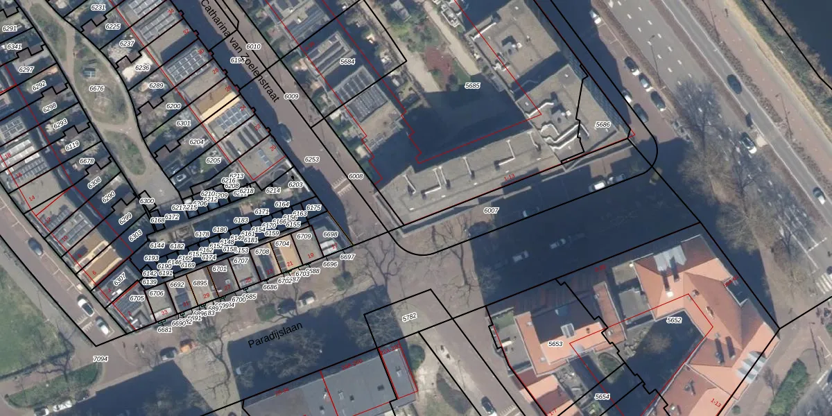 Paradijslaan 13 is gelegen op kadastraal perceel KLG00C5685. Deze kadastrale aanduiding is uniek en wordt gebruikt door het Kadaster om eigendomsrechten en andere zakelijke rechten vast te leggen. Het perceel maakt onderdeel uit van de kadastrale gemeente Kralingen.
