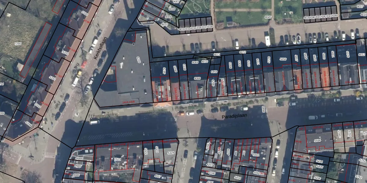 Paradijslaan 133-A is gelegen op kadastraal perceel RTD07R6108. Deze kadastrale aanduiding is uniek en wordt gebruikt door het Kadaster om eigendomsrechten en andere zakelijke rechten vast te leggen. Het perceel maakt onderdeel uit van de kadastrale gemeente Rotterdam.