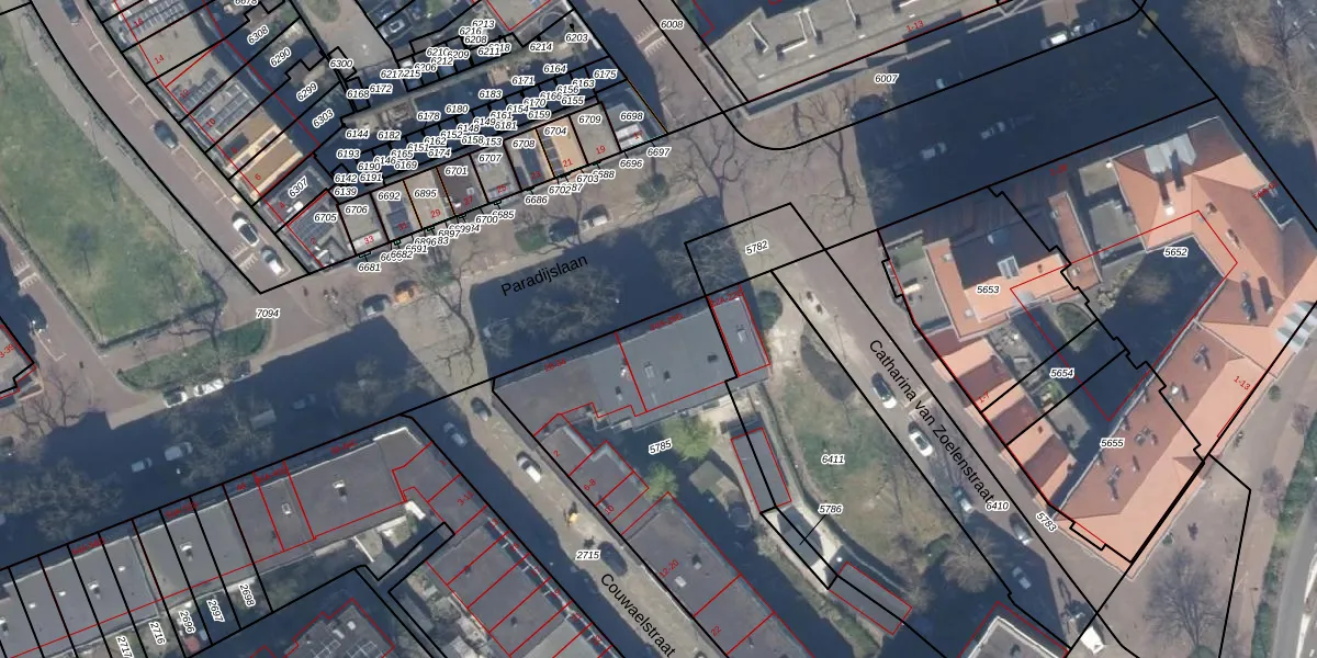 Paradijslaan 24-B is gelegen op kadastraal perceel KLG00C5785. Deze kadastrale aanduiding is uniek en wordt gebruikt door het Kadaster om eigendomsrechten en andere zakelijke rechten vast te leggen. Het perceel maakt onderdeel uit van de kadastrale gemeente Kralingen.
