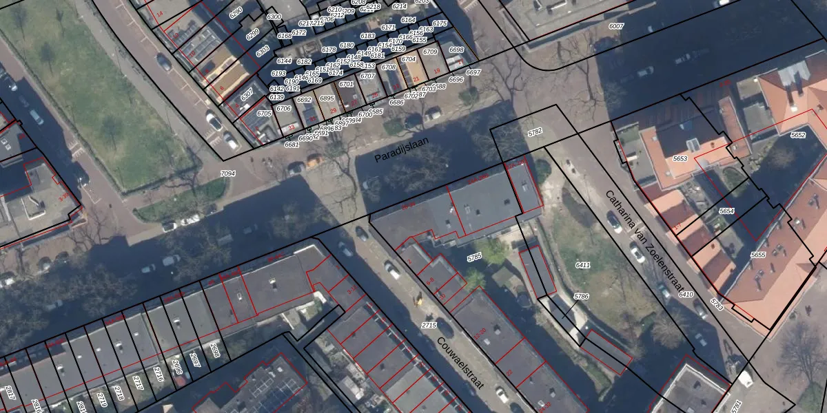 Paradijslaan 28 is gelegen op kadastraal perceel KLG00C5785. Deze kadastrale aanduiding is uniek en wordt gebruikt door het Kadaster om eigendomsrechten en andere zakelijke rechten vast te leggen. Het perceel maakt onderdeel uit van de kadastrale gemeente Kralingen.