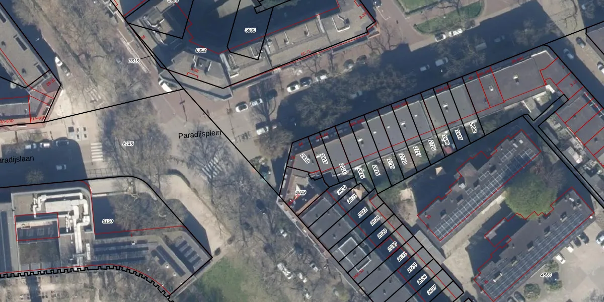 Paradijslaan 66 is gelegen op kadastraal perceel KLG00C2818. Deze kadastrale aanduiding is uniek en wordt gebruikt door het Kadaster om eigendomsrechten en andere zakelijke rechten vast te leggen. Het perceel maakt onderdeel uit van de kadastrale gemeente Kralingen.