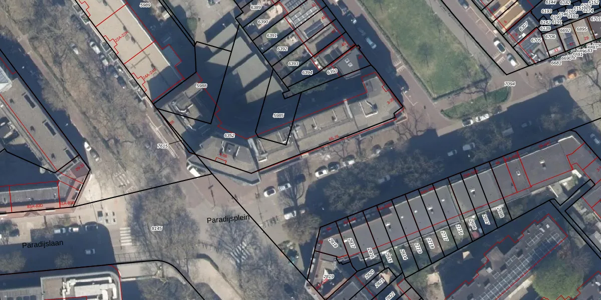 Paradijslaan 71 is gelegen op kadastraal perceel KLG00C6352. Deze kadastrale aanduiding is uniek en wordt gebruikt door het Kadaster om eigendomsrechten en andere zakelijke rechten vast te leggen. Het perceel maakt onderdeel uit van de kadastrale gemeente Kralingen.