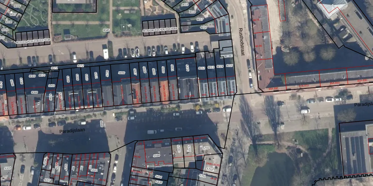 Paradijslaan 97-D is gelegen op kadastraal perceel RTD07R5376. Deze kadastrale aanduiding is uniek en wordt gebruikt door het Kadaster om eigendomsrechten en andere zakelijke rechten vast te leggen. Het perceel maakt onderdeel uit van de kadastrale gemeente Rotterdam.