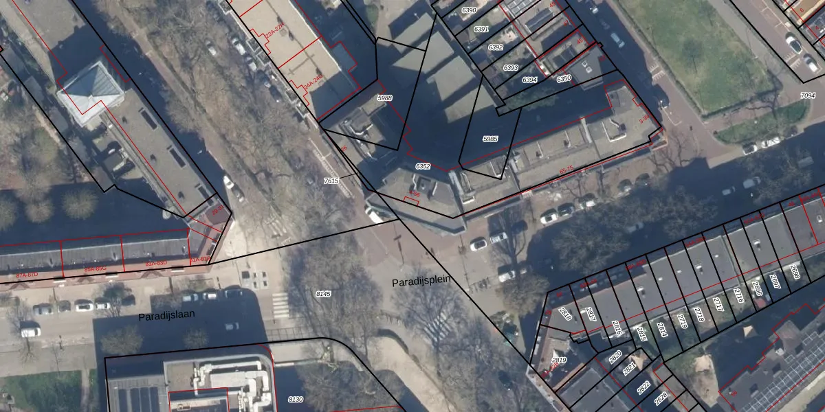 Het perceel waarop Paradijsplein 20 staat heeft een oppervlakte van 6706 m². Dit is een zeer groot perceel. De perceeloppervlakte wordt geregistreerd door het Kadaster. Gedetailleerde informatie over de maten van dit perceel kunt u vinden in het rapport Kadastrale kaart met maatvoering van Paradijsplein 20.
