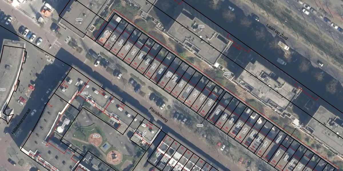 Het perceel waarop Parallelweg 70 staat heeft een oppervlakte van 99 m². Dit is een klein perceel. De perceeloppervlakte wordt geregistreerd door het Kadaster. Gedetailleerde informatie over de maten van dit perceel kunt u vinden in het rapport Kadastrale kaart met maatvoering van Parallelweg 70.