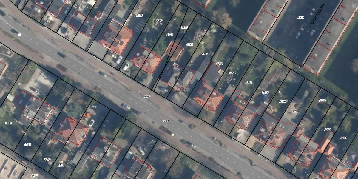 Gebruik de zoekbalk of klik op een perceel voor informatie over de adressen binnen dit perceel.