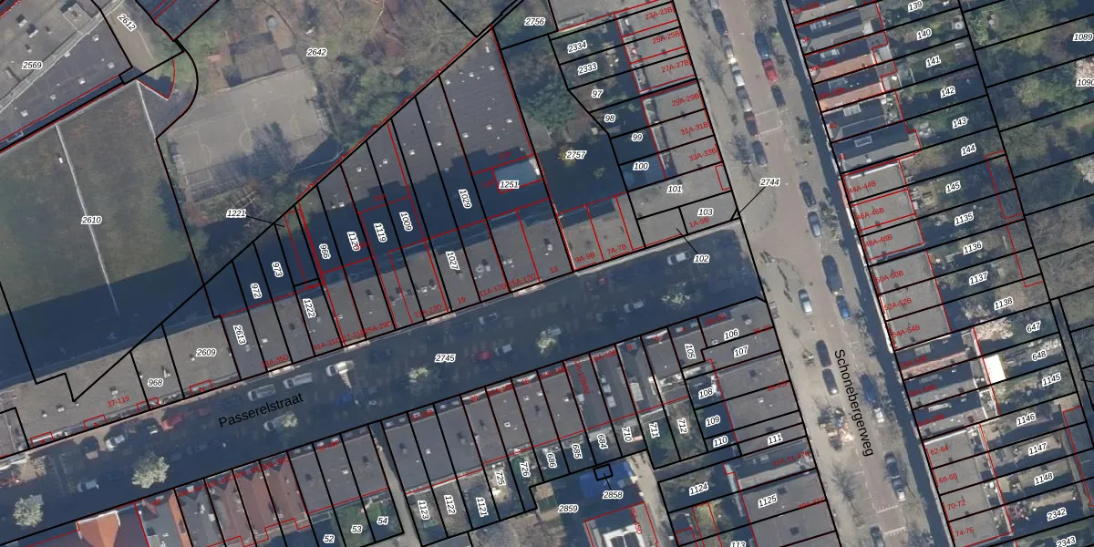 Het perceel waarop Passerelstraat 13 staat heeft een oppervlakte van 537 m². Dit is een groot perceel. De perceeloppervlakte wordt geregistreerd door het Kadaster. Gedetailleerde informatie over de maten van dit perceel kunt u vinden in het rapport Kadastrale kaart met maatvoering van Passerelstraat 13.