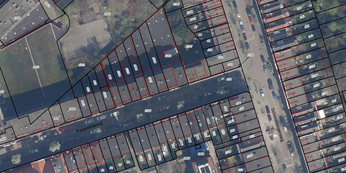 Het perceel waarop Passerelstraat 15-C staat heeft een oppervlakte van 537 m². Dit is een groot perceel. De perceeloppervlakte wordt geregistreerd door het Kadaster. Gedetailleerde informatie over de maten van dit perceel kunt u vinden in het rapport Kadastrale kaart met maatvoering van Passerelstraat 15-C.