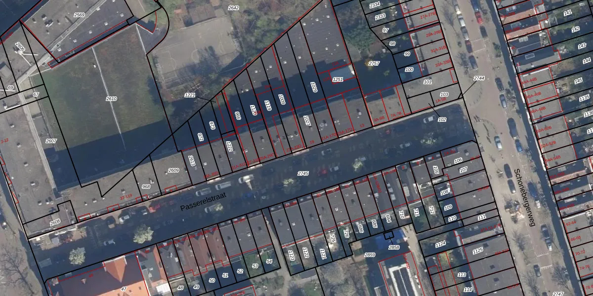 Het perceel waarop Passerelstraat 23-D staat heeft een oppervlakte van 199 m². Dit is een middelgroot perceel. De perceeloppervlakte wordt geregistreerd door het Kadaster. Gedetailleerde informatie over de maten van dit perceel kunt u vinden in het rapport Kadastrale kaart met maatvoering van Passerelstraat 23-D.