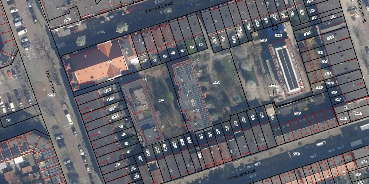 Het perceel waarop Passerelstraat 30-C staat heeft een oppervlakte van 1445 m². Dit is een zeer groot perceel. De perceeloppervlakte wordt geregistreerd door het Kadaster. Gedetailleerde informatie over de maten van dit perceel kunt u vinden in het rapport Kadastrale kaart met maatvoering van Passerelstraat 30-C.