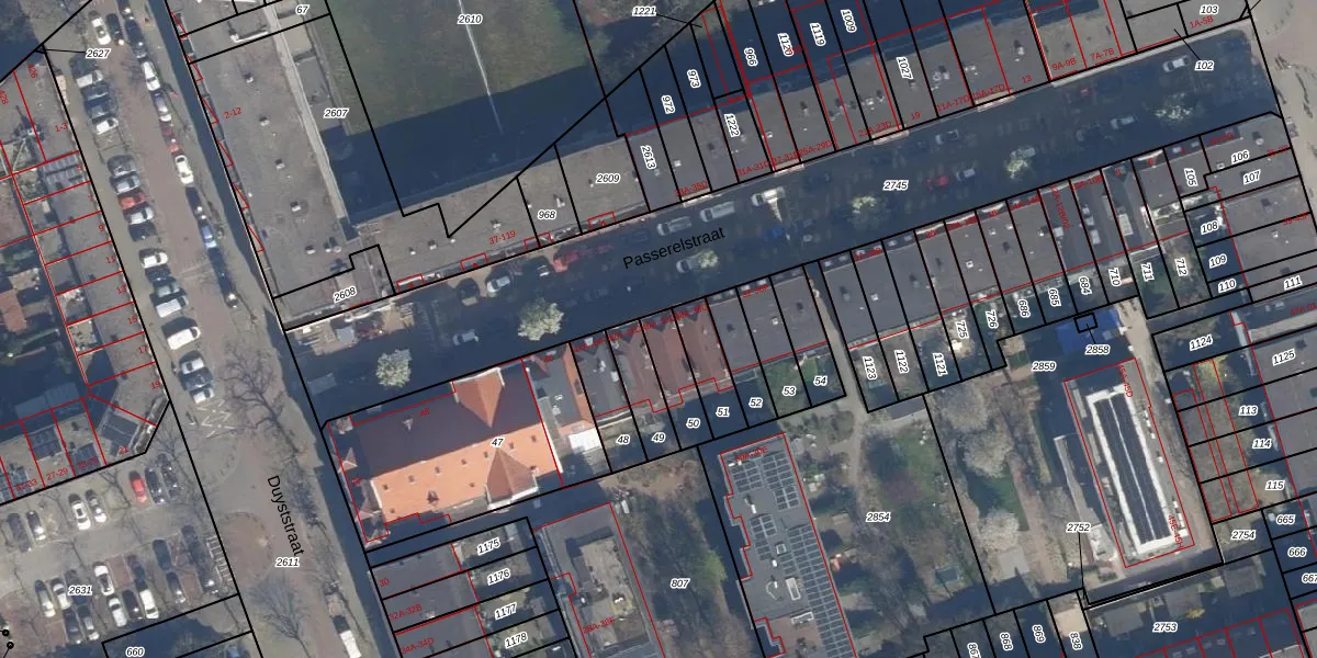 Passerelstraat 40-A is gelegen op kadastraal perceel DHV00F50. Deze kadastrale aanduiding is uniek en wordt gebruikt door het Kadaster om eigendomsrechten en andere zakelijke rechten vast te leggen. Het perceel maakt onderdeel uit van de kadastrale gemeente Delfshaven.