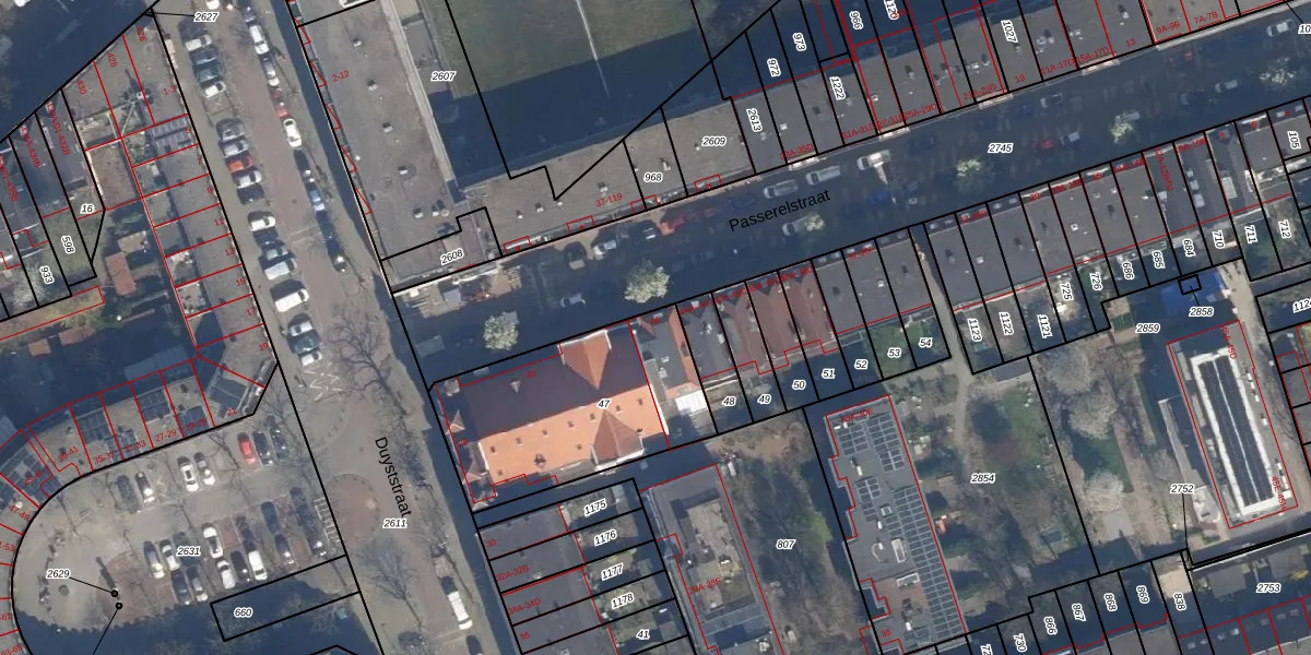 Het perceel waarop Passerelstraat 46 staat heeft een oppervlakte van 825 m². Dit is een groot perceel. De perceeloppervlakte wordt geregistreerd door het Kadaster. Gedetailleerde informatie over de maten van dit perceel kunt u vinden in het rapport Kadastrale kaart met maatvoering van Passerelstraat 46.