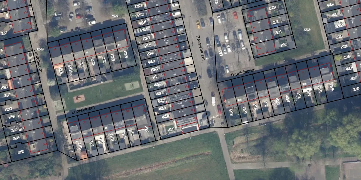 Het perceel waarop Passiebloem 35 staat heeft een oppervlakte van 126 m². Dit is een middelgroot perceel. De perceeloppervlakte wordt geregistreerd door het Kadaster. Gedetailleerde informatie over de maten van dit perceel kunt u vinden in het rapport Kadastrale kaart met maatvoering van Passiebloem 35.