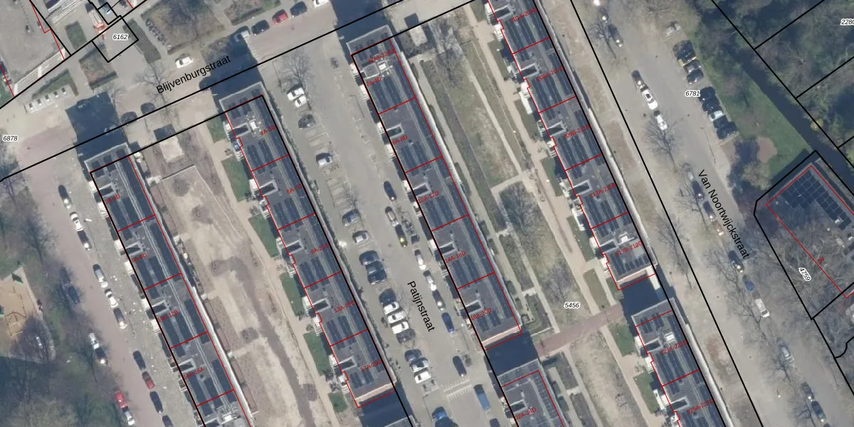 Het perceel waarop Patijnstraat 12-D staat heeft een oppervlakte van 7205 m². Dit is een zeer groot perceel. De perceeloppervlakte wordt geregistreerd door het Kadaster. Gedetailleerde informatie over de maten van dit perceel kunt u vinden in het rapport Kadastrale kaart met maatvoering van Patijnstraat 12-D.