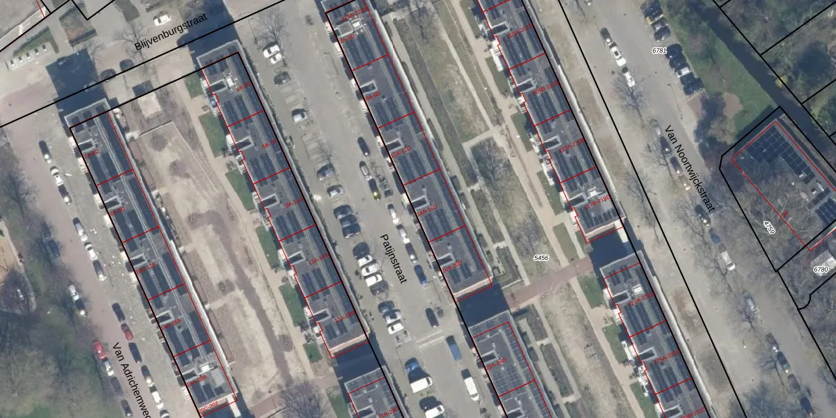 Het perceel waarop Patijnstraat 14-A staat heeft een oppervlakte van 7205 m². Dit is een zeer groot perceel. De perceeloppervlakte wordt geregistreerd door het Kadaster. Gedetailleerde informatie over de maten van dit perceel kunt u vinden in het rapport Kadastrale kaart met maatvoering van Patijnstraat 14-A.