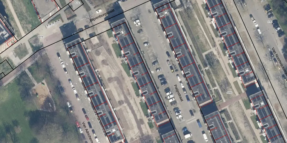 Het perceel waarop Patijnstraat 9-D staat heeft een oppervlakte van 7205 m². Dit is een zeer groot perceel. De perceeloppervlakte wordt geregistreerd door het Kadaster. Gedetailleerde informatie over de maten van dit perceel kunt u vinden in het rapport Kadastrale kaart met maatvoering van Patijnstraat 9-D.