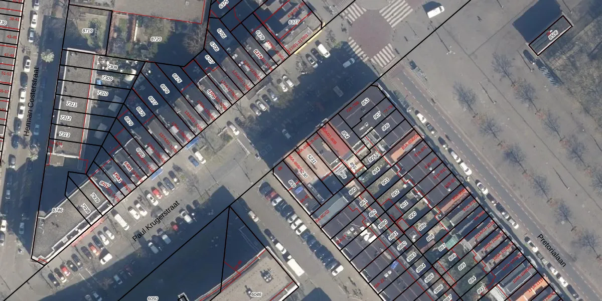 Het perceel waarop Paul Krugerstraat 84-A staat heeft een oppervlakte van 93 m². Dit is een klein perceel. De perceeloppervlakte wordt geregistreerd door het Kadaster. Gedetailleerde informatie over de maten van dit perceel kunt u vinden in het rapport Kadastrale kaart met maatvoering van Paul Krugerstraat 84-A.