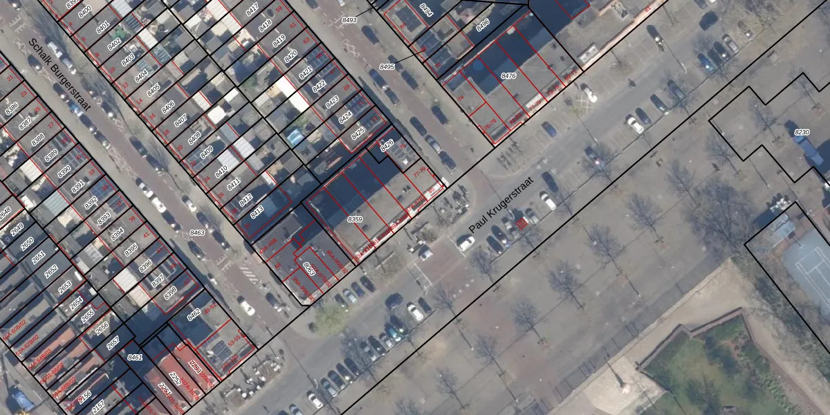 Paul Krugerstraat 87-B is gelegen op kadastraal perceel CLS00D8359. Deze kadastrale aanduiding is uniek en wordt gebruikt door het Kadaster om eigendomsrechten en andere zakelijke rechten vast te leggen. Het perceel maakt onderdeel uit van de kadastrale gemeente Charlois.
