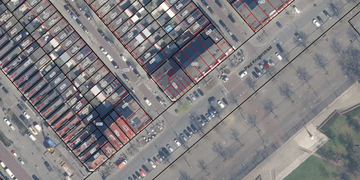 Paul Krugerstraat 97-B-01 is gelegen op kadastraal perceel CLS00D8063. Deze kadastrale aanduiding is uniek en wordt gebruikt door het Kadaster om eigendomsrechten en andere zakelijke rechten vast te leggen. Het perceel maakt onderdeel uit van de kadastrale gemeente Charlois.